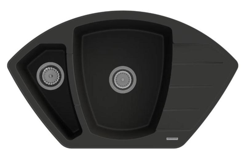 Graniteland Monte Γρανίτης μαύρος γωνιακός νεροχύτης επιφάνειας 901x538mm με βύσμα από ανοξείδωτο χάλυβα 1208971413