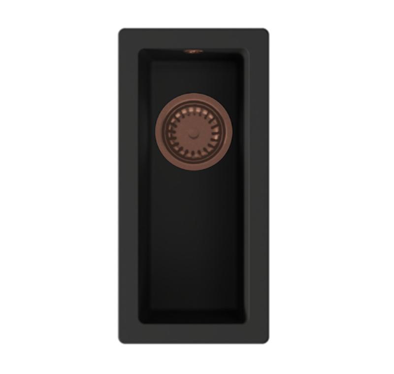 GraniteMy Universal γρανίτης μικρό μαύρο νεροχύτη 17x40 εκατοστά μαύρο επιφανειακή εγκατάσταση, υποδομή και επίπεδη εγκατάσταση με χάλκινο φις 1208967141