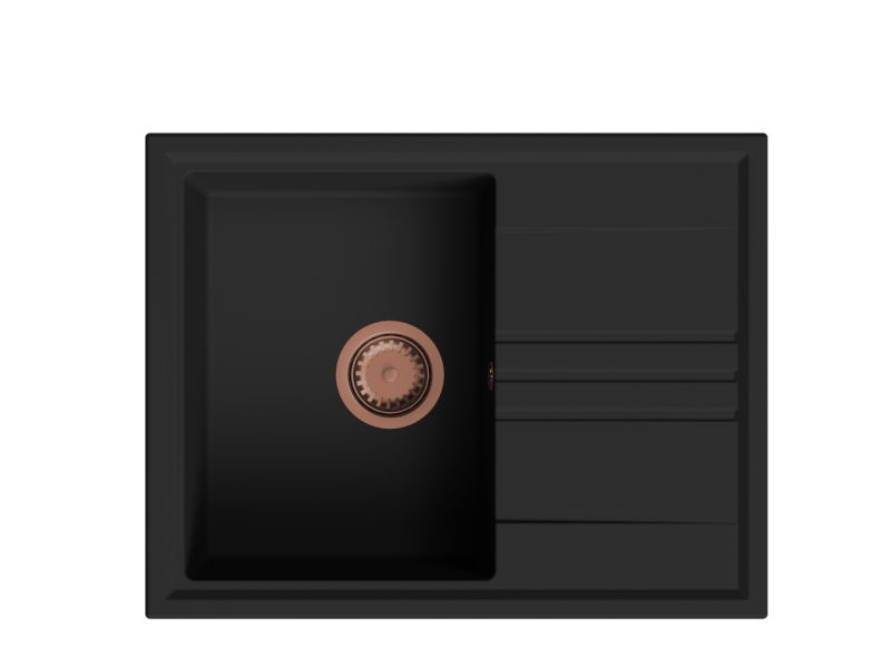 GraniteMy Vesi γρανιτένιος επιφανειακός μαύρος νεροχύτης 64x50cm με αποστράγγιστική επιφάνεια, αναστρέψιμος με χάλκινη βύσμα 1208967297