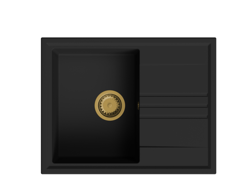 GraniteMy Βεσι γρανίτης επιφανειακός μαύρος νεροχύτης 64x50 εκ. με στραγγιστήρα, αναστρέψιμος, με χρυσή βύσμα 1208967296