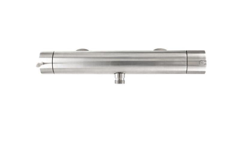 Η βρύση είναι κατασκευασμένη από μασίφ ορείχαλκο και διαθέτει ανθεκτική επιχρωμιωμένη επίστρωση. Αυτό εξασφαλίζει πολυτελή λάμψη, εξαιρετική αντοχή στη διάβρωση και μακροχρόνια αξιοπιστία. Χάρη στο θερμοστατικό εσωτερικό, η ρυθμισμένη θερμοκρασία παραμένει σταθερή, ακόμη και σε περίπτωση μεταβολής της πίεσης του νερού.