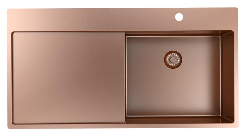 Pure.Sink Exclusivo Χάλκινο νεροχύτη με αποστραγγιστικό τμήμα 100x52 cm Βρύση δεξιά PEX47100RT-62